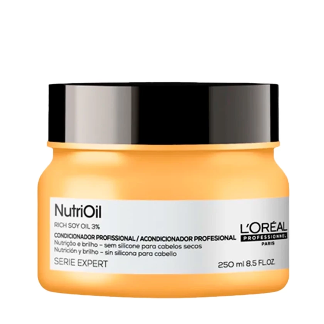 Seus cabelos estão pedindo por nutrição? A Máscara Capilar L'Oréal Professionnel NutriOil resolve o problema de ressecamento e opacidade com sua fórmula profissional avançada. Enriquecida com 3% de óleo de soja, sua tecnologia de alta performance penetra na fibra capilar, proporcionando a dose exata de nutrição sem pesar. O resultado é uma transformação instantânea: cabelos 5x mais fortes, 2x mais macios e com um brilho radiante e duradouro. Ideal para integrar sua rotina de cronograma capilar, esta máscara devolve a saúde e a beleza aos fios, deixando-os visivelmente mais saudáveis, sedosos ao toque e cheios de vida.